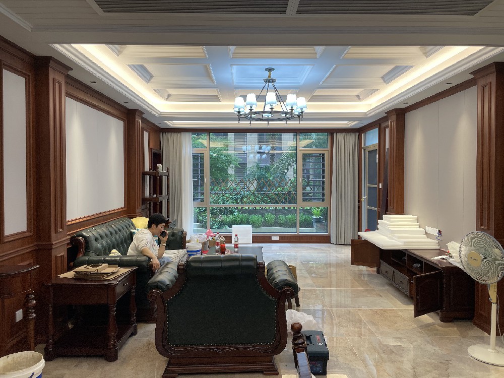 今天給大家分享一套美式風格樣板房案例。這套樣板房是廣西臨桂專賣店譚總去年打造的一套大平層樣板房。整套樣板房由專賣店全程參與打造,施工按照公司標準落地,部分頂面還試用公司頂面L型龍骨打底,整體下來硬裝效果非常不錯。現階段軟裝還未全部完成,硬裝柜子部分還有部分門板需進行調整,因此現場拍攝的一些照片并不是···