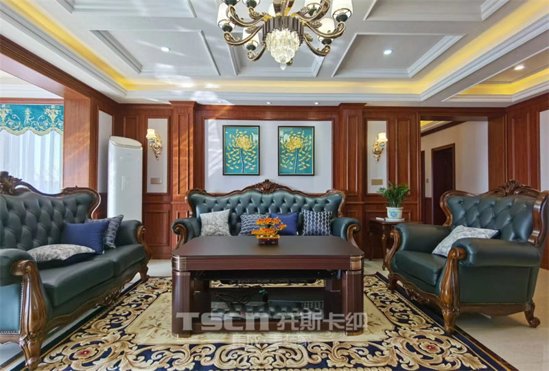 美式風格,多以深木色來打造整體感以及溫馨感,復古又大氣。厚重的復古美式一般應用于大宅和別墅裝修當中,即有貴氣感,也有文化感,自在感。現代裝修中的美式在古典中融入了一點隨意,摒棄了過多的繁瑣與奢華,更具生活氣息。下圖是以護墻板整體打造的溫馨美式家居空間,歷久彌新,久看不厭。